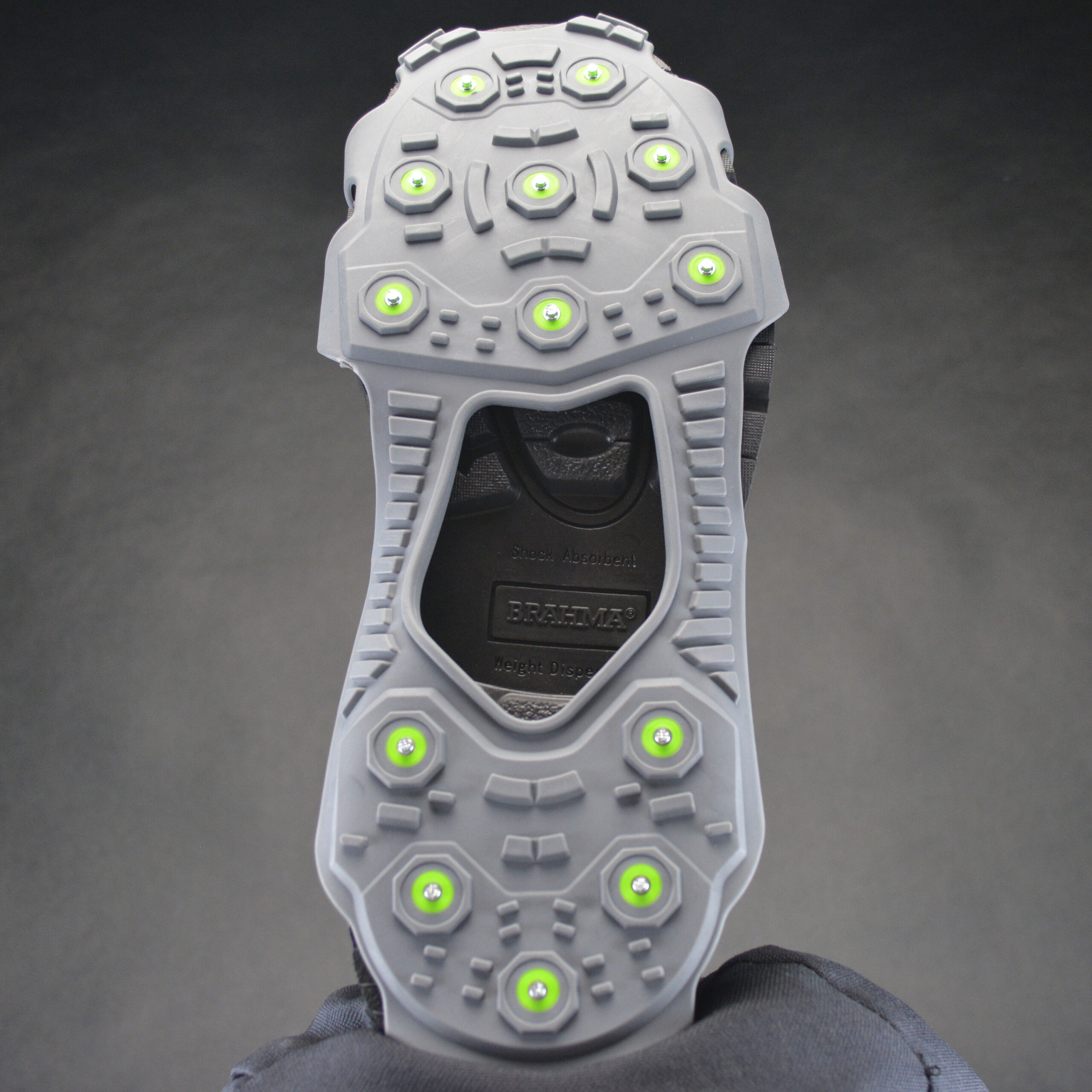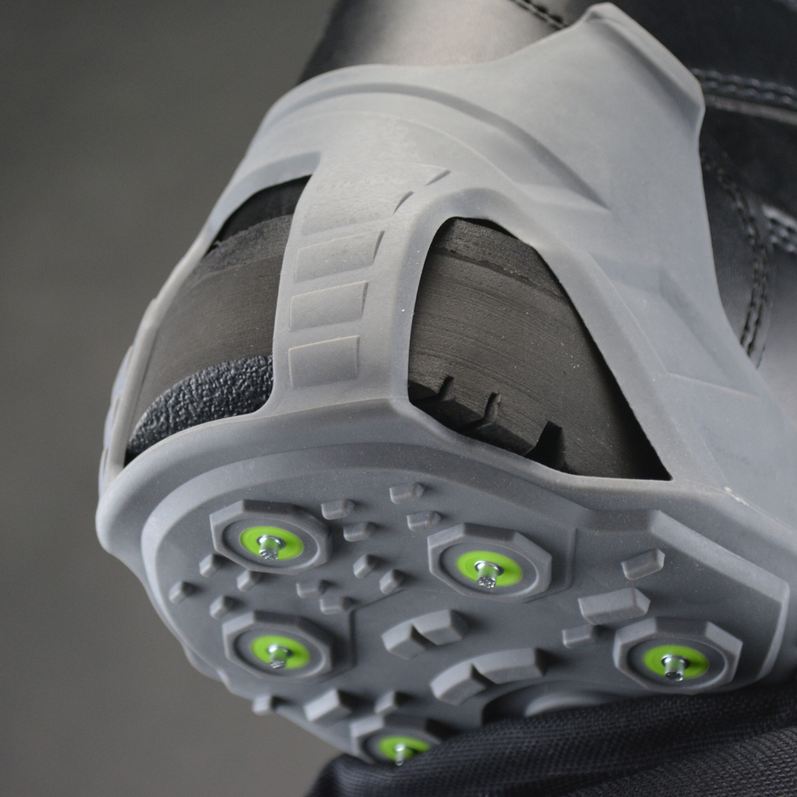 The E-CLEAT™ with WALKING TRACTION® feature 26 “molded-in” carbonized steel studs for aggressive and permanent traction for everyday walking on ice and snow. With E-CLEAT™, employees can have the confidence to walk in slippery winter conditions while still wearing their everyday footwear.