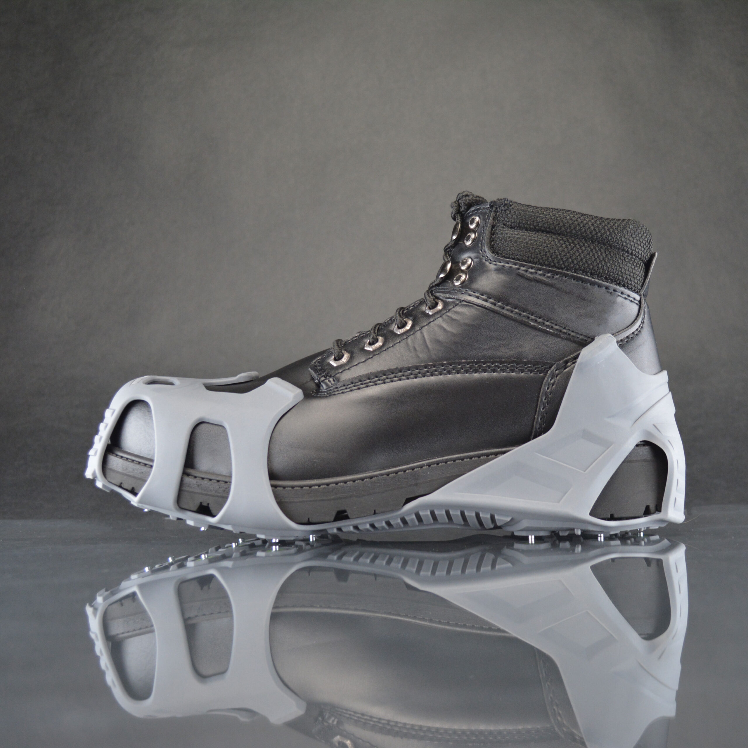 E-CLEAT™ with WALKING TRACTION® is a lightweight industrial grade winter traction device that fits easily over all types of shoes and boots. Comfortable enough to be virtually inconspicuous on the user’s foot, the E-CLEAT™ is also easy to put on or take off in seconds.