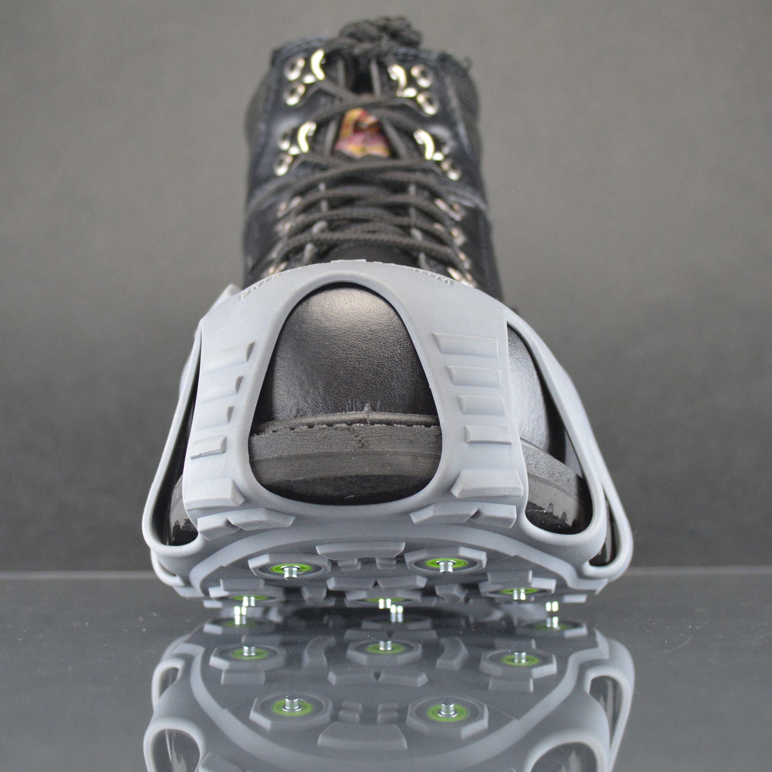 The E-CLEAT™ with WALKING TRACTION® features dual rear pull-tabs for easy on/off and an aggressively treaded sole that is designed to provide additional traction in thicker snow.