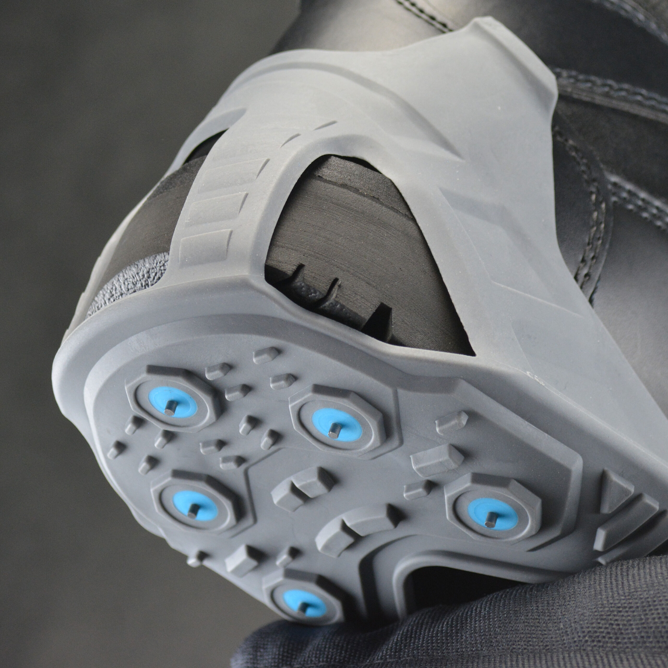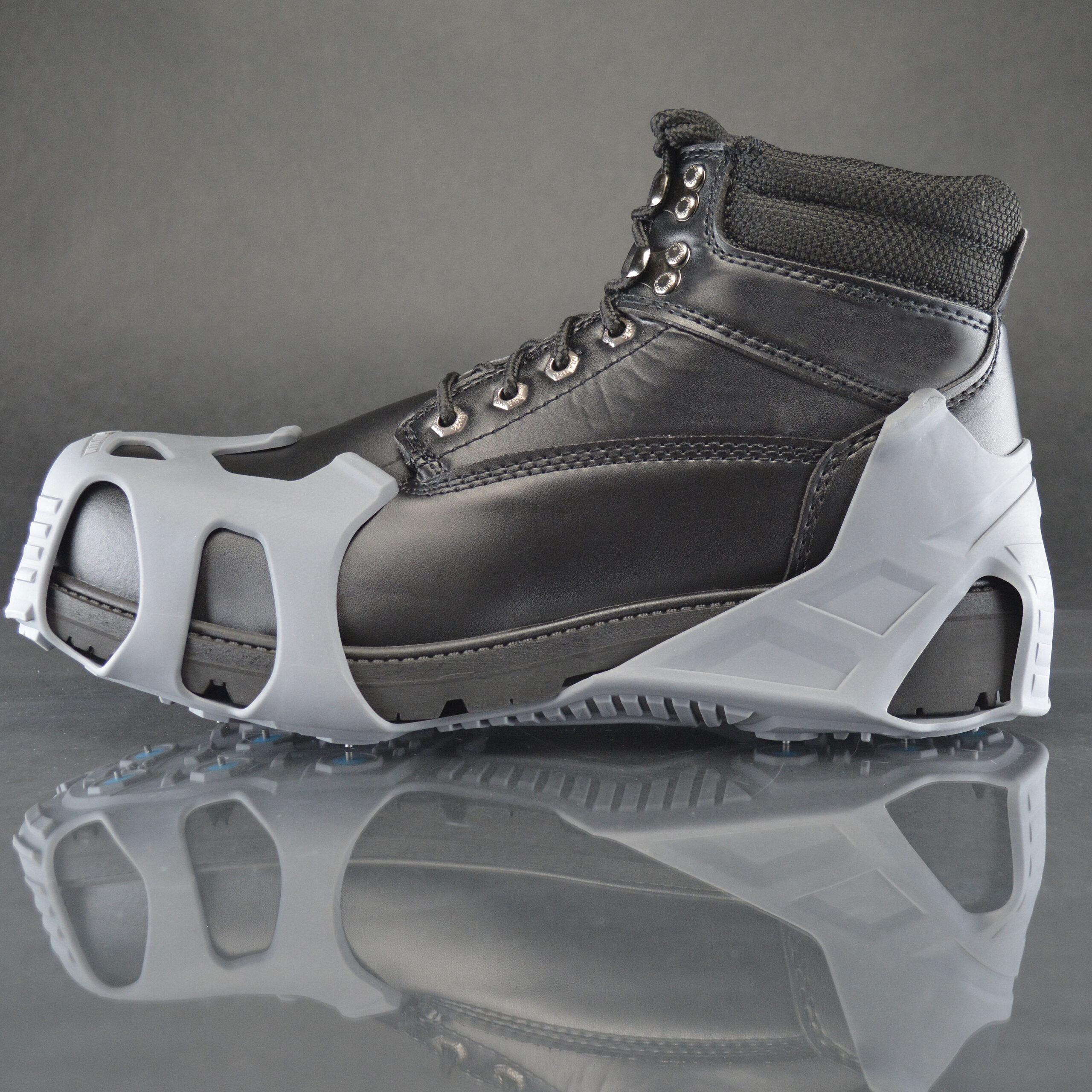 E-CLEAT™ with WORKING TRACTION® is an aggressive, industrial grade ice cleat that fits easily and conveniently over all types of shoes and boots. Meant for extended outdoor use only, the E-CLEAT™ Working Traction is also lightweight and virtually inconspicuous on the user’s foot.