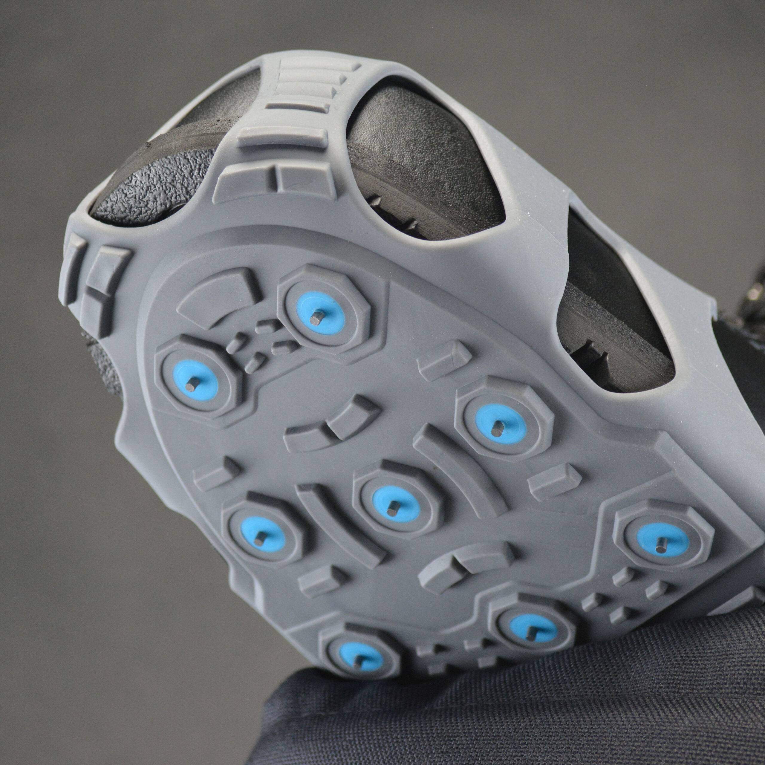 E-CLEAT™ Ice Cleat features dual rear pull-tabs for easy on and off and an aggressively treaded sole to provide additional traction in thicker snow.
