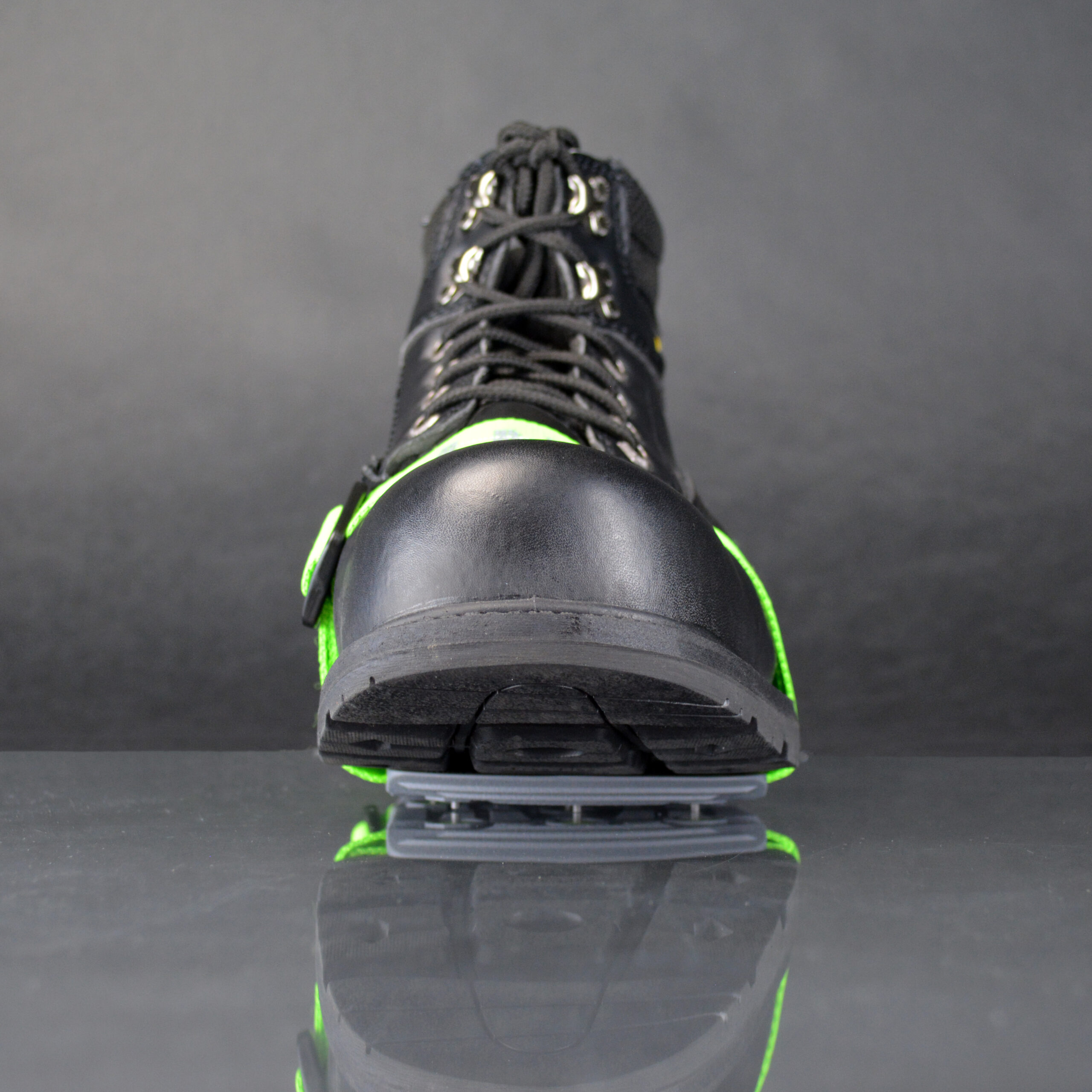 Beveled edges in both the toe and heel make the ICE BREAKER comfortable underfoot while going about normal work activities. High-Viz green straps in the toe and heel make the ICE BREAKER easily visible for safety checks. Light in weight, the ICE BREAKER can be easily carried with employees while not in use.